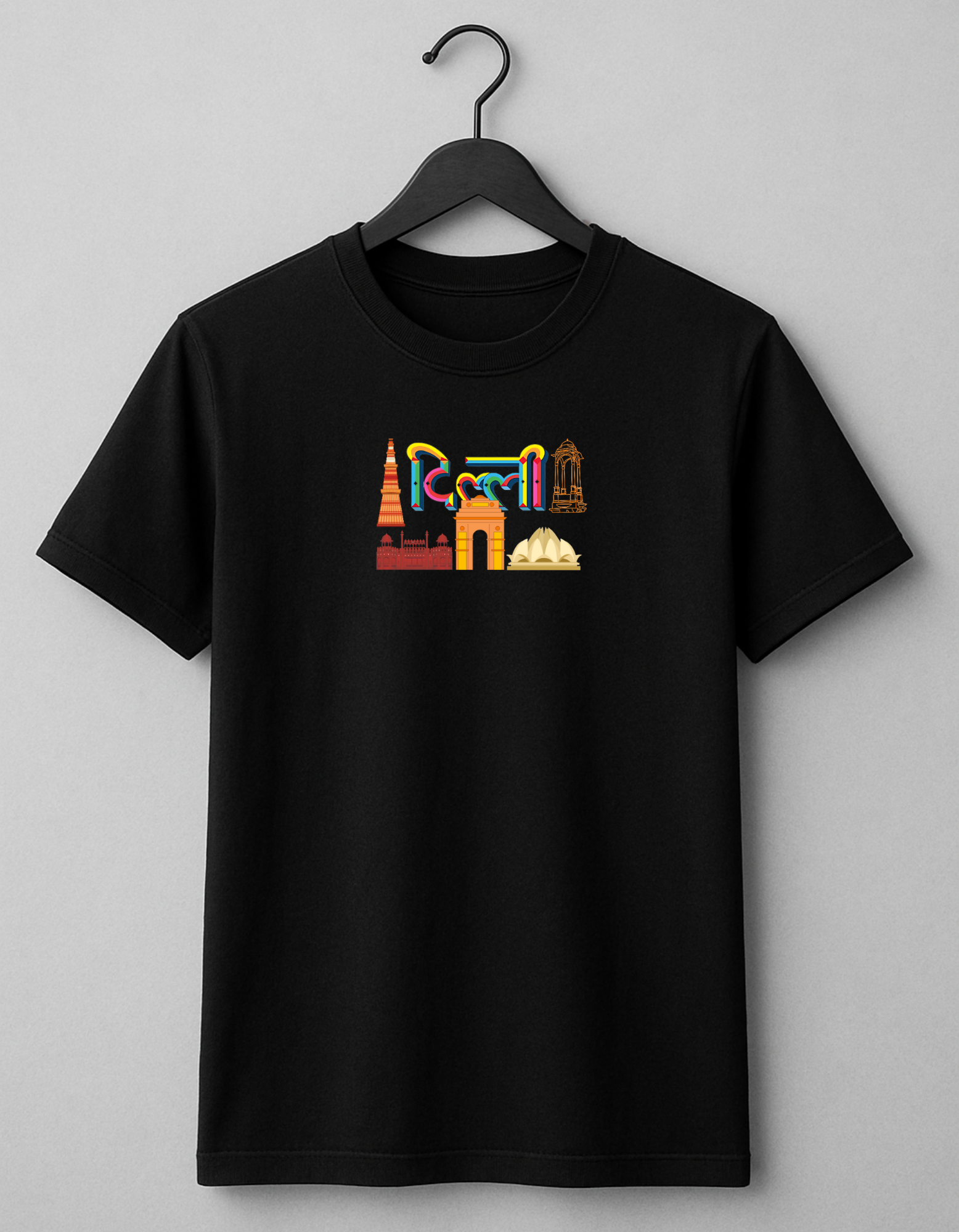 Bring the kinetic energy of India's capital to your wardrobe. This bold tee celebrates the unrelenting hustle of Dilli—the historical depth, the auto-rickshaw flash, and the electric street vibe that makes it unforgettable