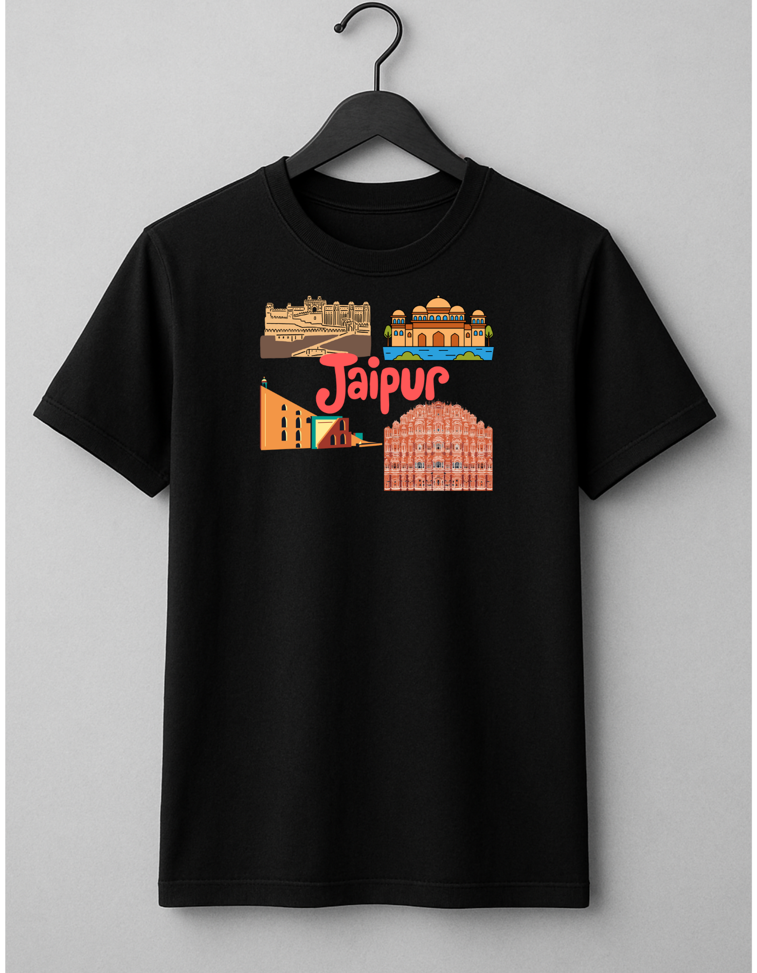 Bring the royal artistry and structured beauty of the Pink City to your street look. This graphic tee celebrates The Pink City Vibe—the stunning geometric windows of the Hawa Mahal, the vibrant chaos of the bazaars, and the timeless, majestic spirit of Jaipur's ancient architecture