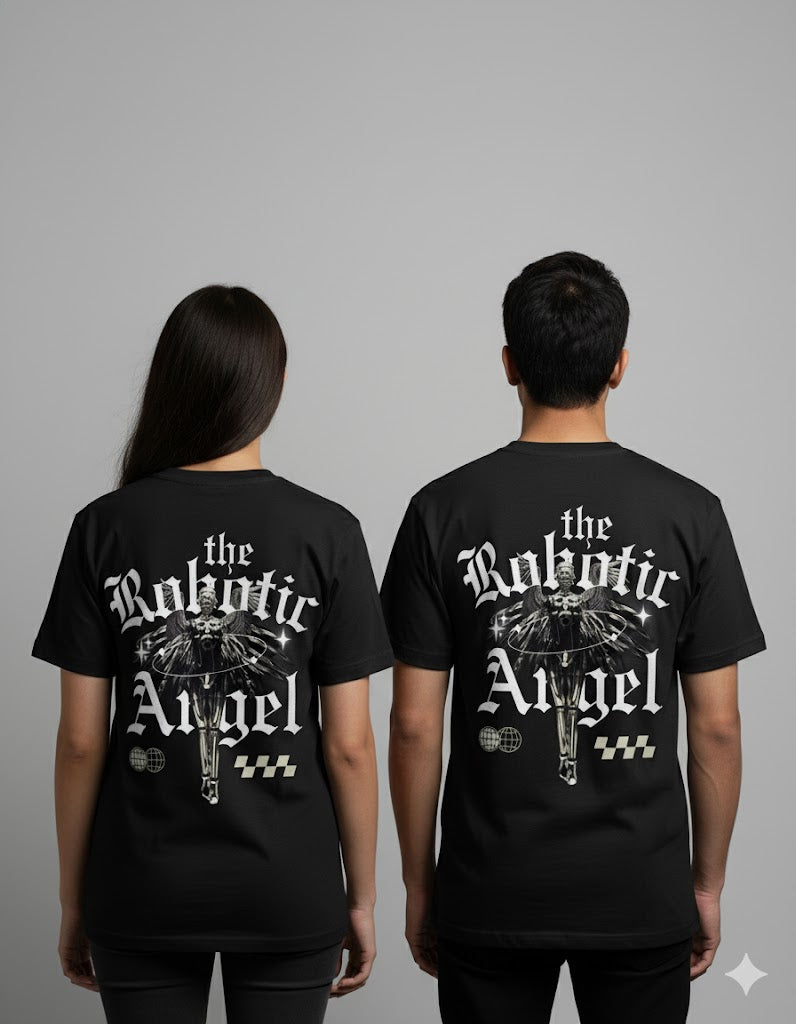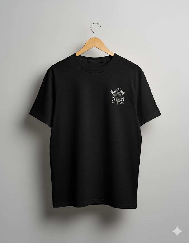 A bold, futuristic tee that merges divine grace with mechanical power. Crafted from premium cotton, this design symbolizes the harmony between technology and soul — perfect for those who embrace strength, style, and a touch of rebellion